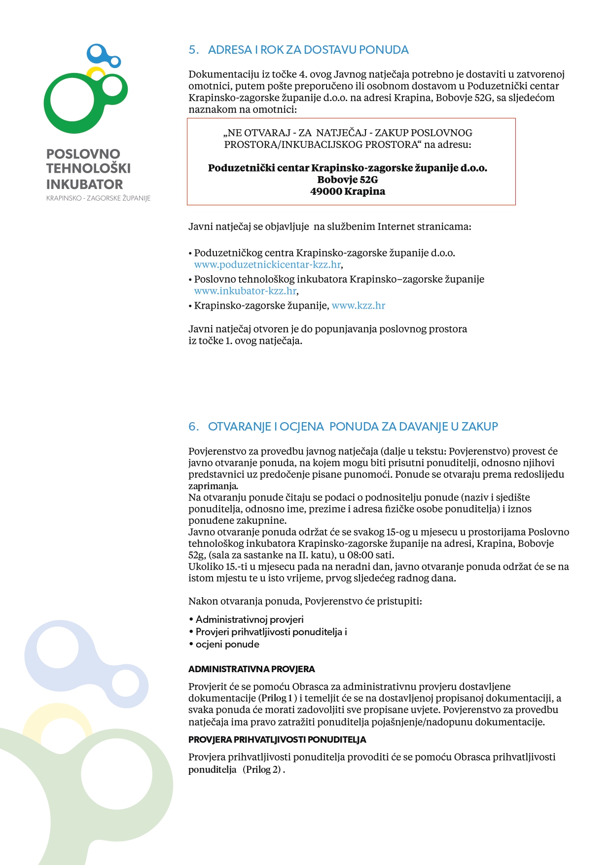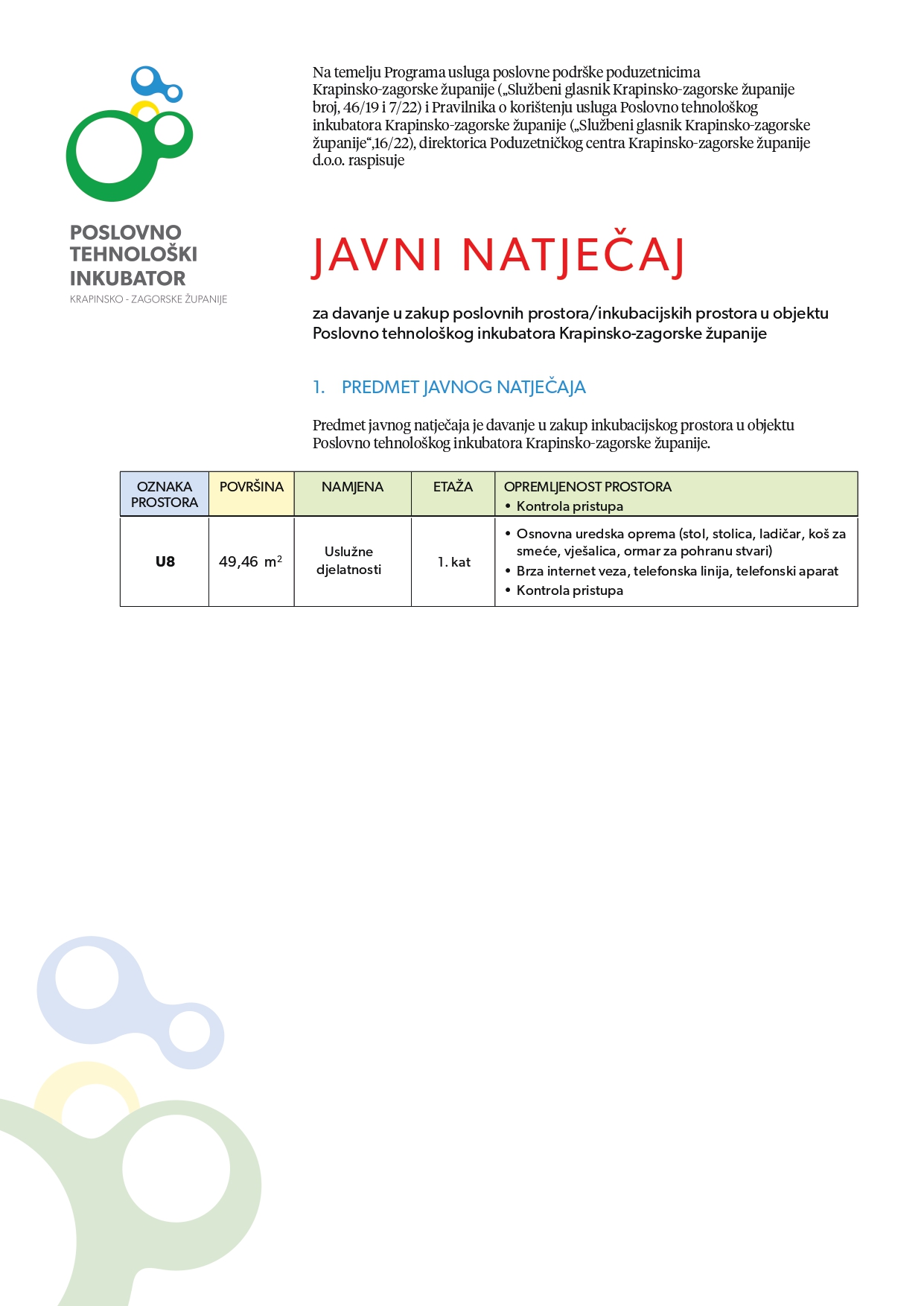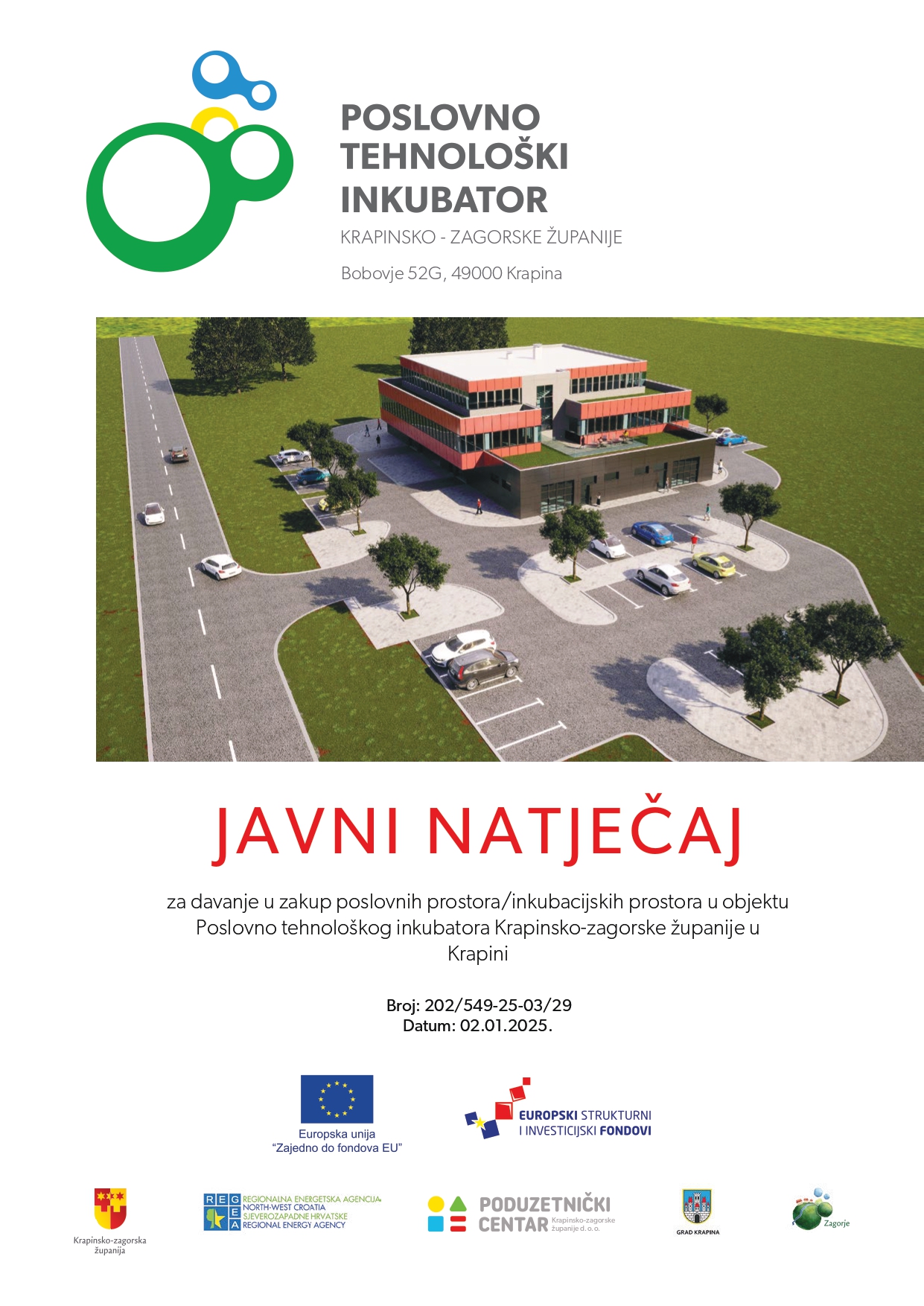 Javni natječaj za davanje u zakup poslovnih prostora/inkubacijskih prostora u objektu Poslovno-tehnološkog inkubatora Krapinsko-zagorske županije, prostori u Krapini